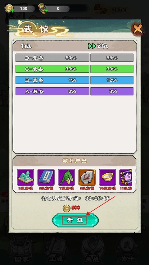 6、升级所需时间较长,玩家可通过参与关卡挑战获取加速沙漏。