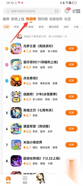 2、不知道玩什么游戏的用户可以直接点击热游榜,查看当前最热的游戏,任何一款都不会出错;