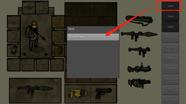 4、DIY角色完成后,我们滑动到最上方,点击“save”中的“create new”,即可快速保存当前设置。