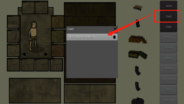 5、打开下图所示的“load”,选择刚才的存档就可以快速生成搭配了