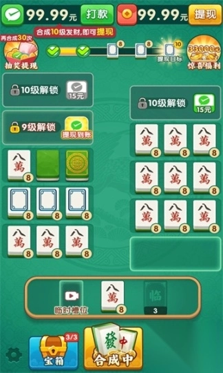 《福运对对碰》是一款把传统麻将元素和合成玩法相结合的休闲益智类游戏。玩家只需把三个一样的麻将合成为一个更高级的麻将,就能持续挑战自我,解锁众多精美麻将以及丰厚奖励,尽情感受合成与收集带来的乐趣,还有机会收获红包惊喜哦!它采用经典玩法,简单易懂、极易上手:运用大家熟悉的麻将元素,搭配简单的合成规则,无论是老人还是小孩,都能轻松上手。