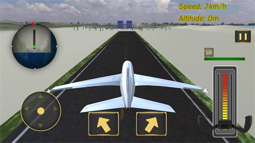 4、正式进入挑战后,玩家需要通过右侧滑块控制飞机的加减速,利用方向键控制方向,左侧摇杆则可以控制飞机拉升;