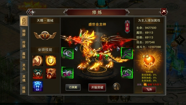 除了装备之外,翅膀也是可以提升实力的地方,但是,翅膀对于免费玩家只能靠每天的副本来积累。小R玩家可以考虑升一点翅膀。