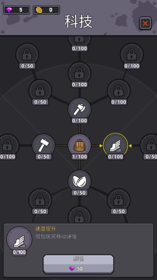 5、可升级科技,加强某项技能,提升居民移速等。