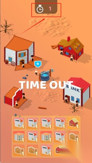 1、开局需快速点击红框选中的"BANK"建筑进行升级,提升金币产出效率,为后续建设积累资金。