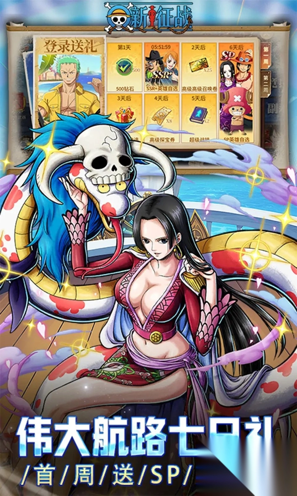 《新征战》这款手游,以航海王IP为蓝本,采用横屏模式,是一款策略卡牌游戏。它高度还原了原作里众多经典角色与精彩剧情。在游戏中,精美的卡牌立绘搭配炫酷的技能特效,能让玩家尽情享受组建最强海贼团的乐趣。从草帽海贼团成员到王下七武海,数百位高人气角色等你收集,每个伙伴都具备契合原作设定的独特技能,玩家可通过策略搭配阵容,去挑战伟大航路上形形色色的强敌。