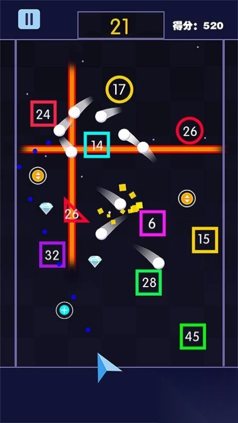 弹球大乱斗最新版,是一款将经典弹球玩法与数字消除元素创新融合的休闲闯关游戏。玩家成功通关后,便能解锁下一难度更高的关卡,持续挑战自我、突破极限。游戏匠心独运地设计了上百个难度各异的关卡,每个关卡都拥有独特的砖块排列形式与数字组合,确保玩家每次游玩都能收获新鲜感。