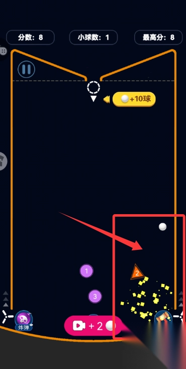 1. 基础玩法为调整弹球发射角度,精准击中带有数字的砖块以实现消除,达成关卡目标,从而赢得游戏胜利。
