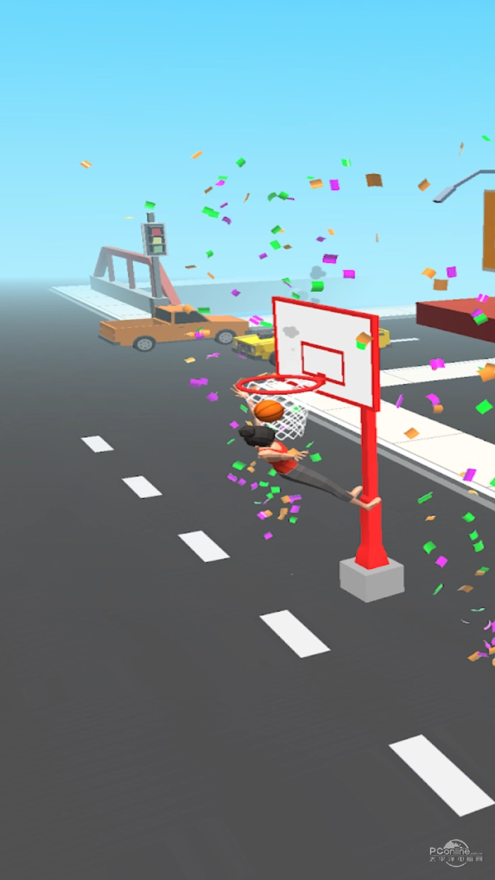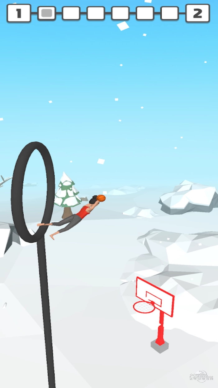 翻转扣篮免费版是一款休闲闯关游戏。游戏里的篮球框,虽然外形差异不大,但颜色丰富,且会出现在不同环境中。在不同环境下,成功投球的次数也不一样。不同环境中的球框,会给玩家的视线和视觉带来变化,不会让玩家产生无趣之感。