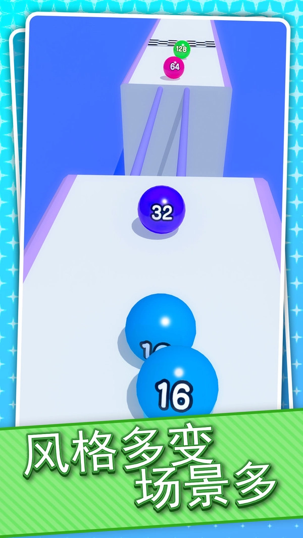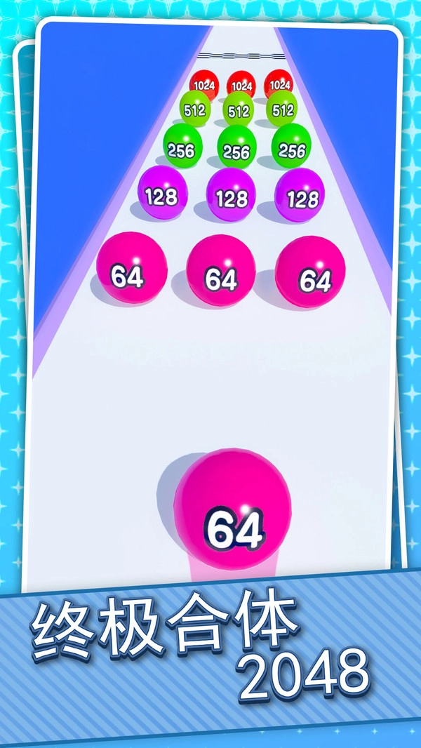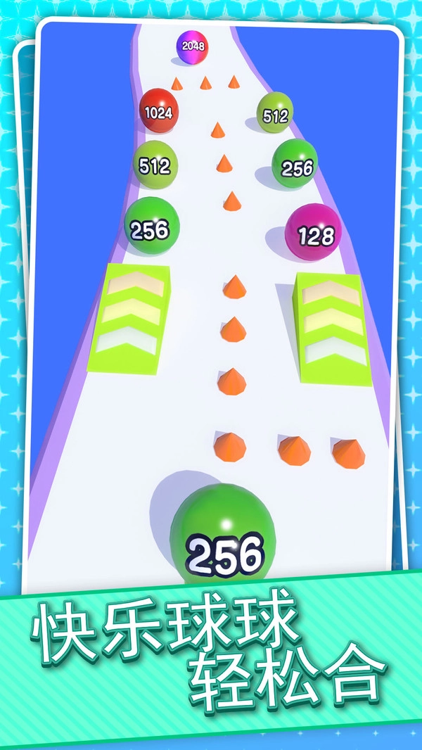 1. 把经典的2048数字合成机制融入球球元素,实现球球的合成以获取更高分值。