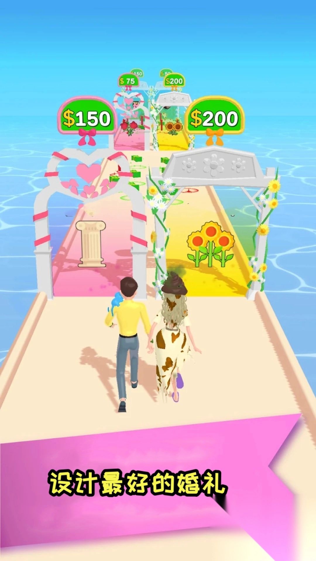 3、从跑酷中收集资源到完成婚礼设计,每一步都带来成就感,享受打造完美婚礼的喜悦。