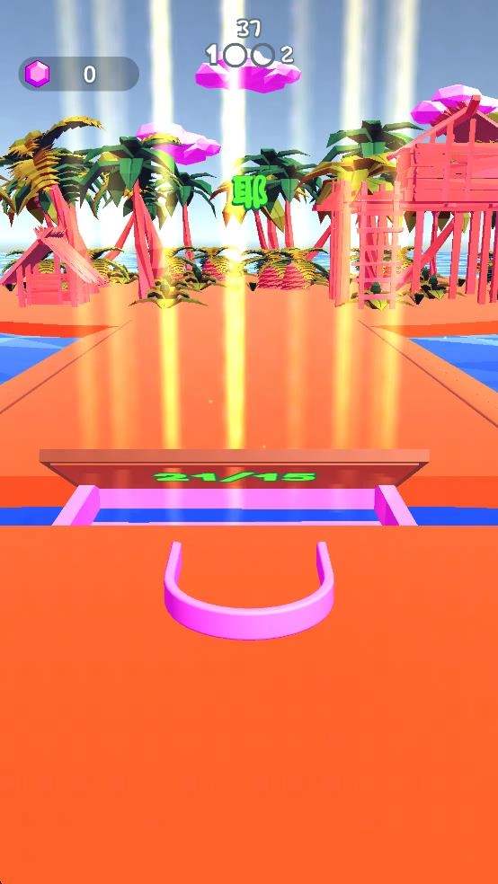 1. 轻点界面下方的“点击开始游戏”按钮,随即进入海岛跑道场景。在此场景中,操控粉色圆环进行移动,同时准备收集沿途出现的粉色小人,持续朝着终点目标前进。
