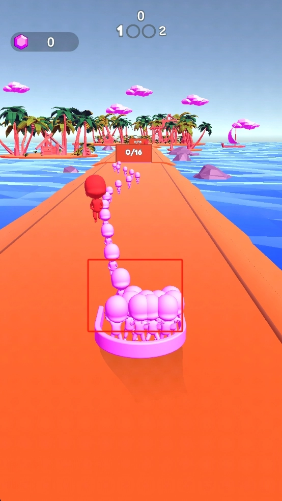 2、在跑道上灵活操控粉色圆环,接住行进的粉色小人,积累数量,留意障碍,持续收集以达成关卡目标。