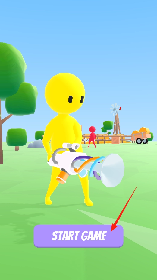 1、在幸存者战士初始界面,点击START GAME,进入战斗场景,通过此操作,操控黄色角色,手持武器,开启对战,体验射击对抗玩法。