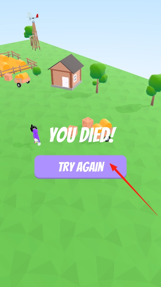 3、若角色被击败,界面显示YOU DIED,点击TRY AGAIN,重新开始本关,通过重试,调整战斗策略,再次挑战敌人,体验反复闯关的机制。