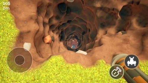 1. 进入游戏之后,挑选初始挖掘点,点击屏幕下方的按钮,随即开始向下挖掘,当碰到矿石或者物品时会自动进行收集。