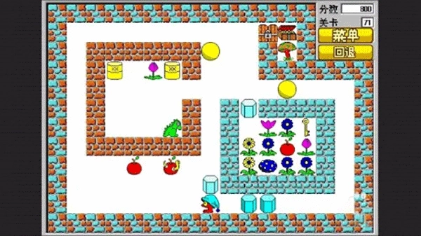 6、蓝砖对碰-苹果喂食人花