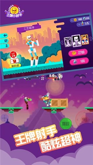 王牌小射手,一款极具魔性与趣味的射击竞技游戏。在游戏中,玩家能够操控形形色色奇奇怪怪的角色展开战斗。每一幅场景地图内,都会随机刷出武器供玩家拾取,依靠获取的武器去打败对手。游戏的动作打击效果十分搞怪,此外,游戏还设有单人闯关的末世模式,快来感受这趣味满满的游戏内容吧。