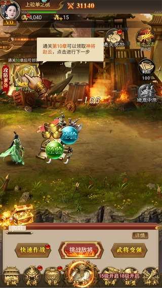 9、点击快速战斗,升级速度会更快呢。游戏里还有超多丰富玩法,等待你去一一探索哟!