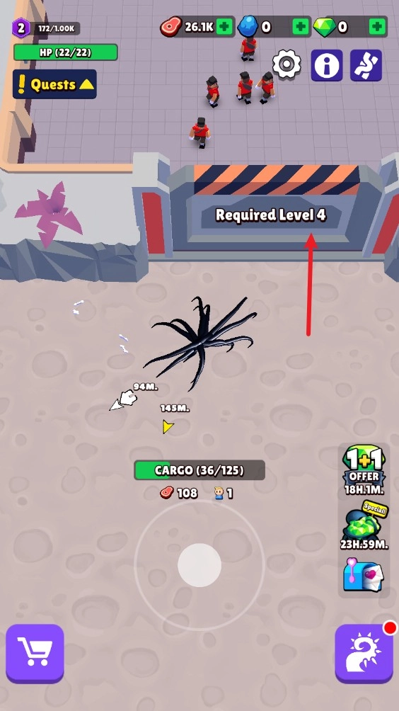 1. 进入游戏之后,我们借助下方的虚拟摇杆操控毒液移动,当靠近NPC时,便能接取任务。