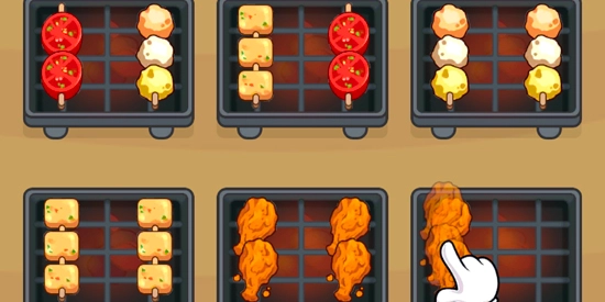 三消匹配玩法:该游戏的核心机制为三消(match - 3)。玩家要做的是通过交换相邻的烤串,让三个及以上同类型烤串在横向或纵向连成一线,达成消除目的。
