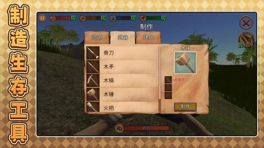 使用木材来制作木筏,即可前往其他的小岛上,寻找不同资源。
