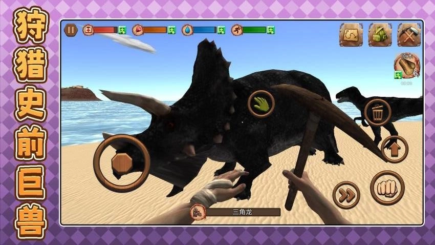1. 把玩家放置在遍布恐龙的岛屿环境之中,玩家得借助环境与道具,躲避恐龙的追逐,最终顺利逃离。