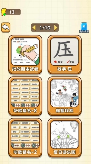 《考试随便考》是一款充满趣味的模拟脑力闯关游戏。在游戏里,玩家能扮演老师批改学生试卷,从错题里算出分数,整个过程轻松诙谐。它涵盖了批改试卷、找字、听歌猜名、露营找茬等多样模式。题目设计别具一格,无厘头风格尽显,正确答案往往藏在那些看似离谱的选项之中,需要玩家打破常规思维,绝对是一场脑洞大开的刺激挑战。