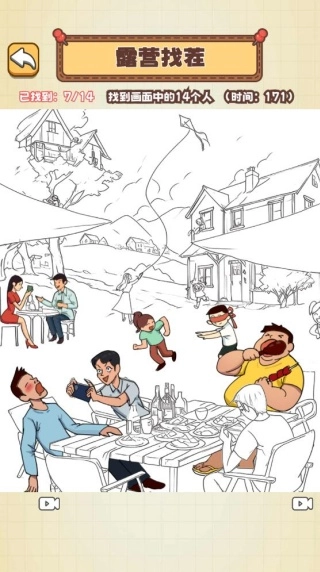 1、进行露营找茬,在场景中按要求找出相应角色,仔细观察画面细节,找齐目标角色完成任务。