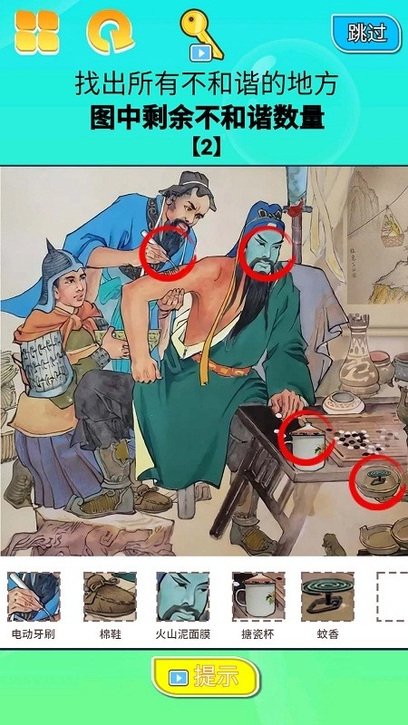 2. 当遭遇困难时,可启用提示功能。届时,系统将高亮呈现一处尚未被发现的差异所在之处,不过每次使用该功能都会扣除相应分数。