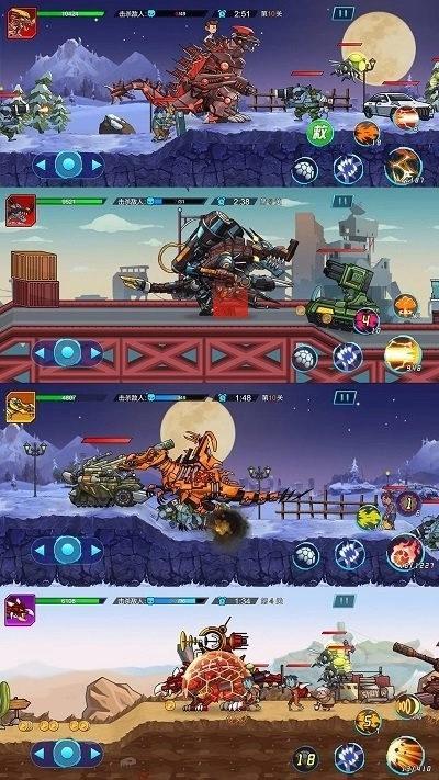 3、随着关卡推进,玩家将面对更智能的敌人和复杂的地形,挑战玩家的操作能力与策略规划;