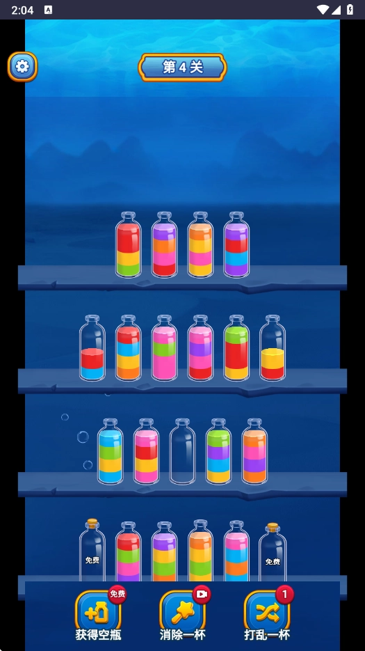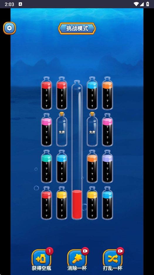 策略性道具运用:玩家能够依据关卡的难易程度以及瓶子的布局状况,巧妙且灵活地运用道具,以此突破困境,进而增强游戏的策略性。