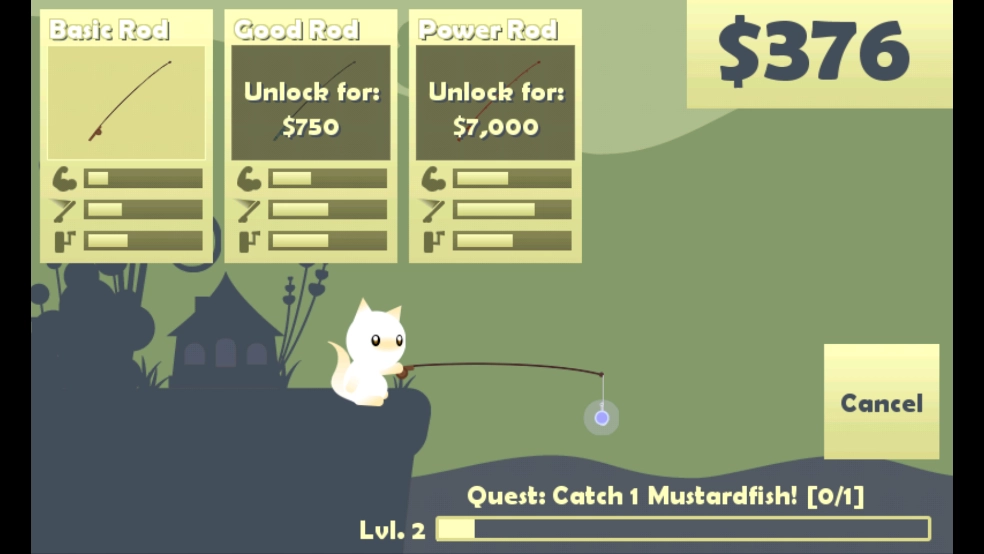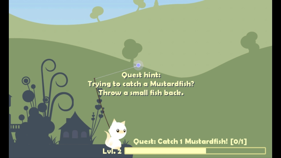 4、变身为一只可爱猫咪,穿梭于各类场景中悠然垂钓,每日钓到不同鱼儿,逐步丰富你的图鉴。