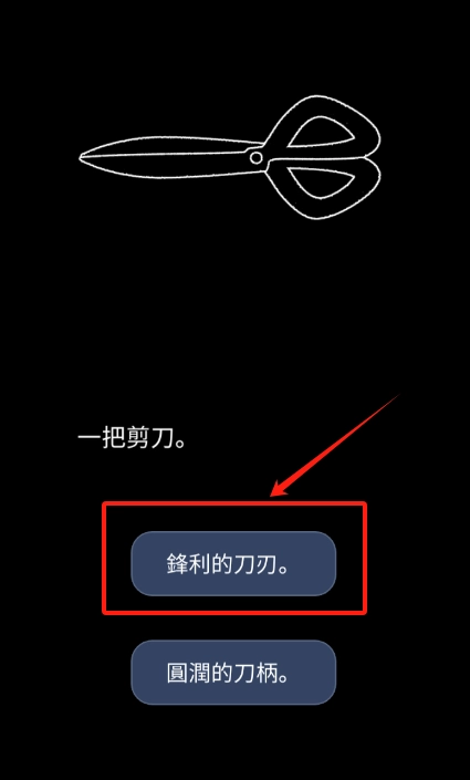 2、瞅见红色框框标注的锋利的刀刃没?用手指点它,就能选对剪刀部件啦。