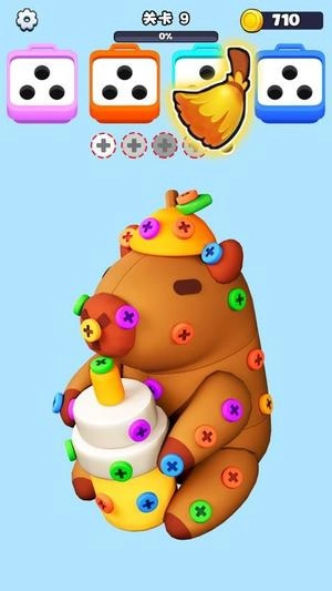 1、关卡设计呈递进式,从简单的单颗螺丝起步,逐步过渡到复杂的多层叠加,难度循序渐进,带来全新的挑战体验。这不仅能激发玩家的探索欲望,还能让玩家收获满满的成就感。