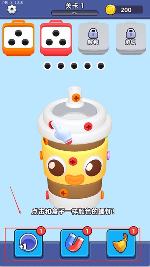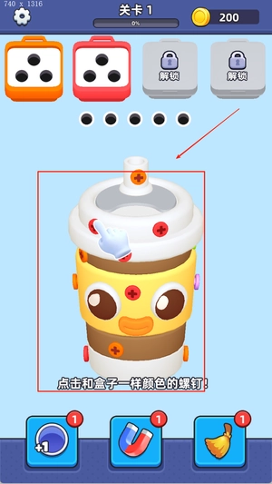 3、通关方式是按照正确顺序将所有钉子成功拧下并收集到目标盒子中,在规定时间内或限定步数内完成才算真正过关。