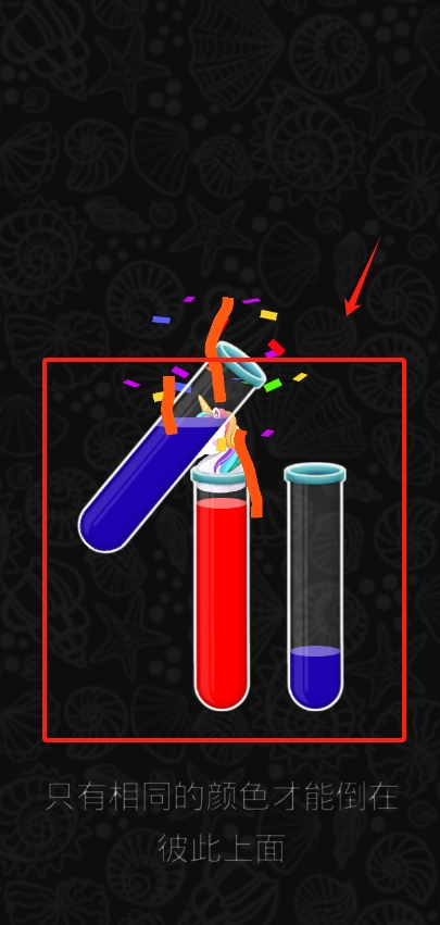 3、你会看到三个颜色各异的试管,这里有个规则,只有相同颜色的液体之间才能够相互倾倒。所以,要是按照提示把蓝色液体倒进红色试管,那可就错啦。