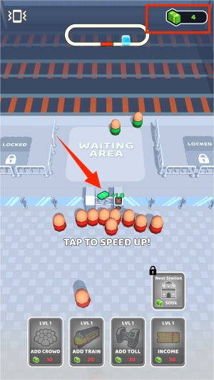 2、当点击检票闸机后,角色将自动通行并进入等待区域,与此同时,系统会发放相应金额的现金奖励。