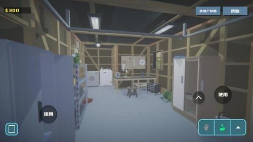 2. 在屏幕左侧能够控制角色的移动方向,而屏幕右侧设置了互动按钮,点击该按钮,既可以打开家具购买界面,也能够启动清扫工具来完成整理任务。