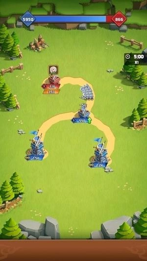 3、不断生产士兵并为其配备武器,使其投入战斗。游戏内设有众多城池,等待玩家去征服。此外,玩家还能够建造防御塔,解锁新兵种与道具。