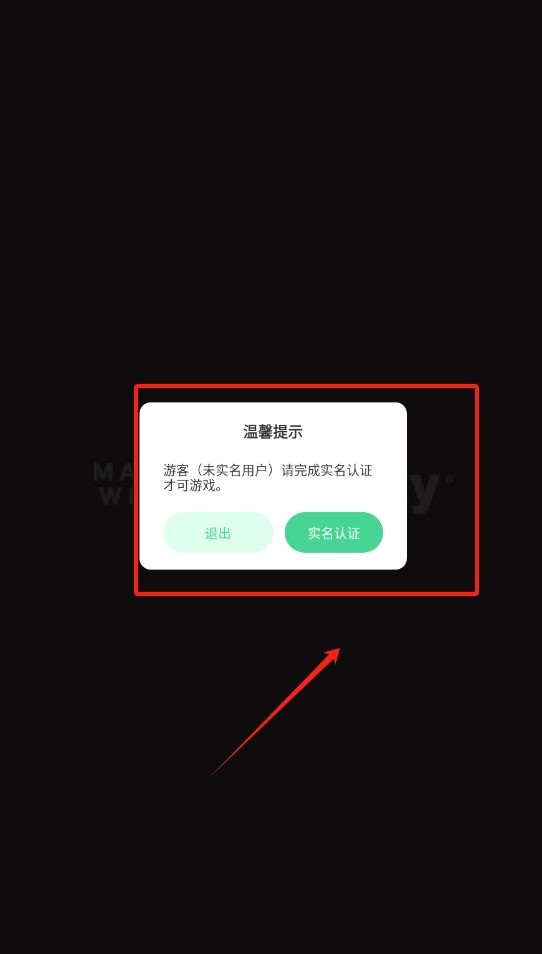 1、点击实名认证完成认证才能游戏,点退出可关闭提示框。