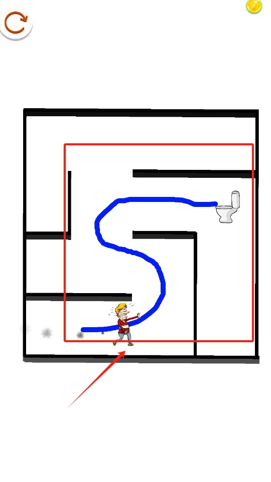 2、小孩要从迷宫下方跑到上方马桶处,跟着箭头方向走就行。