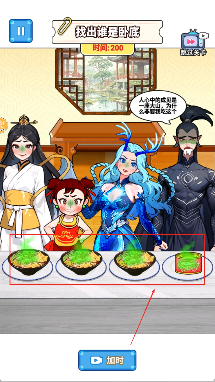 3、可借助对比人物手中物品的差异,来判定卧底身份。比如,在美食中若有一盘与其他的明显不一样,直接指出来就能完成任务。
