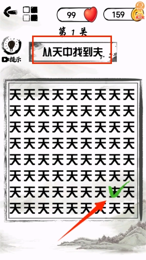 3、快速浏览满屏文字内容,找出隐藏其中的"夫"字符号。