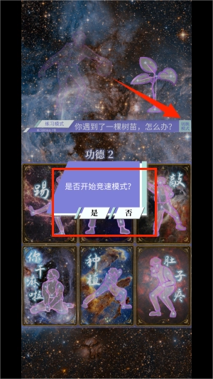 3、在右侧菜单栏中,设有模式切换按钮,通过此按钮能够转换至限时挑战的竞速玩法。当处于该模式时,完成善举便会触发计时器,而功德累积的速度会对最终排名产生影响。