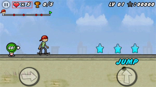 《滑板少年》最新版本是一款围绕滑板主题打造的休闲闯关类手游。在游戏里,玩家操控少年踩着滑板向前行进,于3种各异的地形中展开闯关冒险之旅。游戏中设置了诸多陷阱与障碍物,像花盆便是其中一种。玩家能够通过加速、跳跃等操作,在空中施展各式各样的花样技巧,以此越过重重障碍。只要玩家成功抵达终点,就能顺利通关,进而赢得那金光闪耀的奖杯。