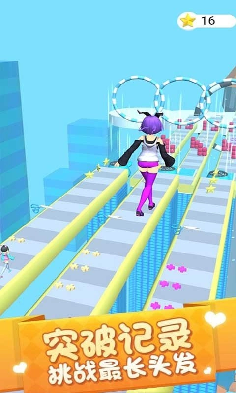 在朝着终点前行的路途之中,你能够随意捡起任意颜色的发套,打造属于你的长发造型。不过,一定要留意那些大剪刀以及沿途各种各样的障碍呀,好好守护你的长发。