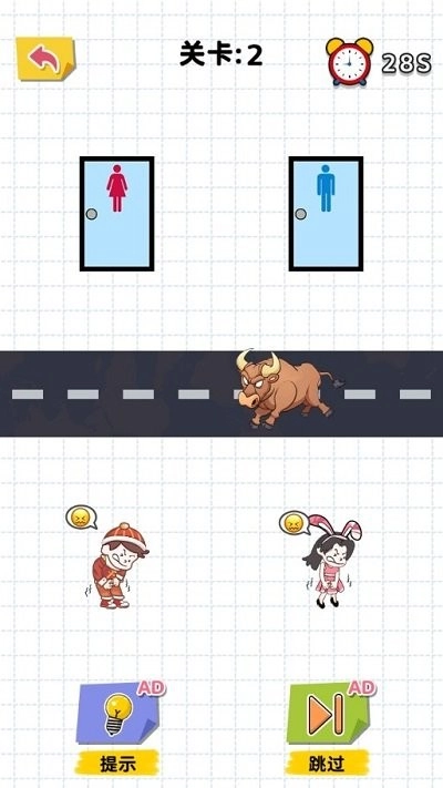 想知道厕所在哪里吗?这款游戏将为你带来轻松有趣的路径解谜体验。你要通过巧妙规划,助力角色找到正确路线。游戏精心打造了多个趣味场景,在这里,你得仔细观察环境,运用逻辑思维去解决问题。其简洁明快的画风,搭配益智的关卡设计,特别适合在休闲娱乐时,让你开动脑筋,享受思考的乐趣。