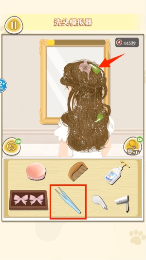 3、下方有很多工具,首先,我们可以选择镊子,将头发上的菜叶子等清洁干净。
