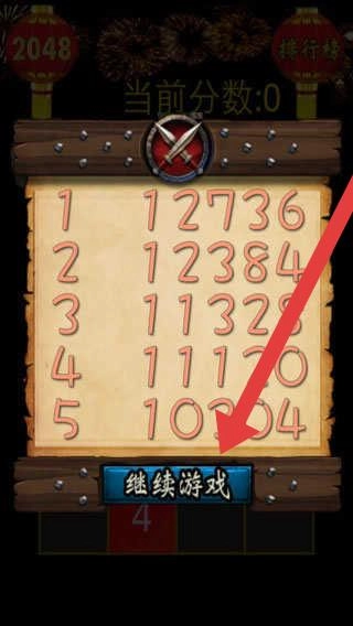 2、游戏中断后,在分数榜点击【继续游戏】,恢复进度,继续合成数字,冲击更高分数。